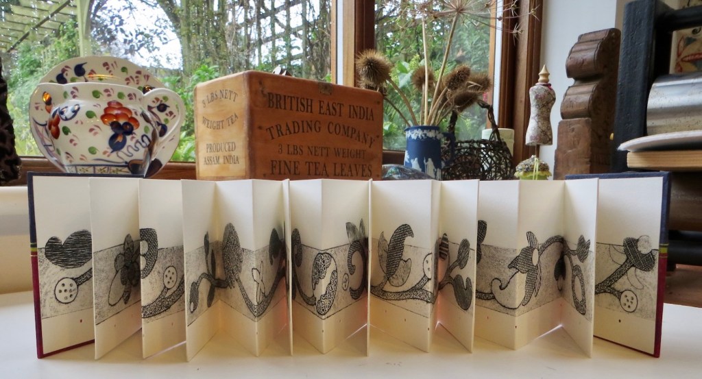 I have however completed the two editions of “Two Yards of Memories”, but the light has been poor for ‘studio’ style images and so I have just taken some photographs from the work bench and here front, back and cover are shown.