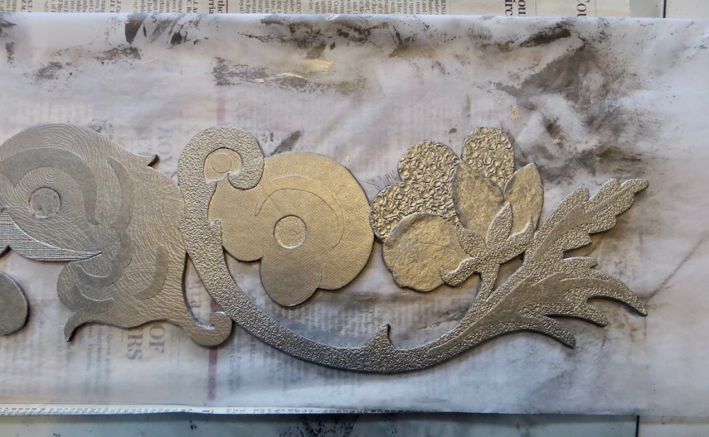 I had chosen silver with a touch of black for the colour, slightly different from the last print, but both colours refer to the shimmering effect of the silk fabrics. The print is 55cm x 11cm