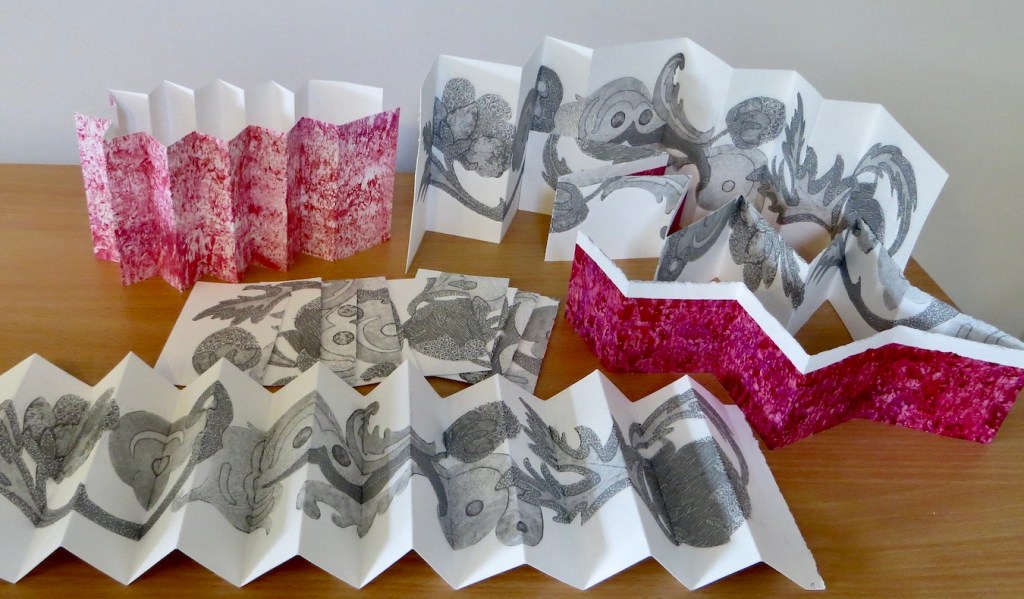 Anyway the ink is now dry and I have been able to fold the books. I found it difficult to retrieve my thoughts, the ‘alteration’ needs to meet certain parameters, the books are each unique, for after all why would you alter a dress to be the same? They had to be different and reduce in style and size and only one print could be used in each book. My initial plans for the design of the books had dissolved a little during the months waiting for the ink to dry, it was therefore necessary to replan and re measure, all this took time.