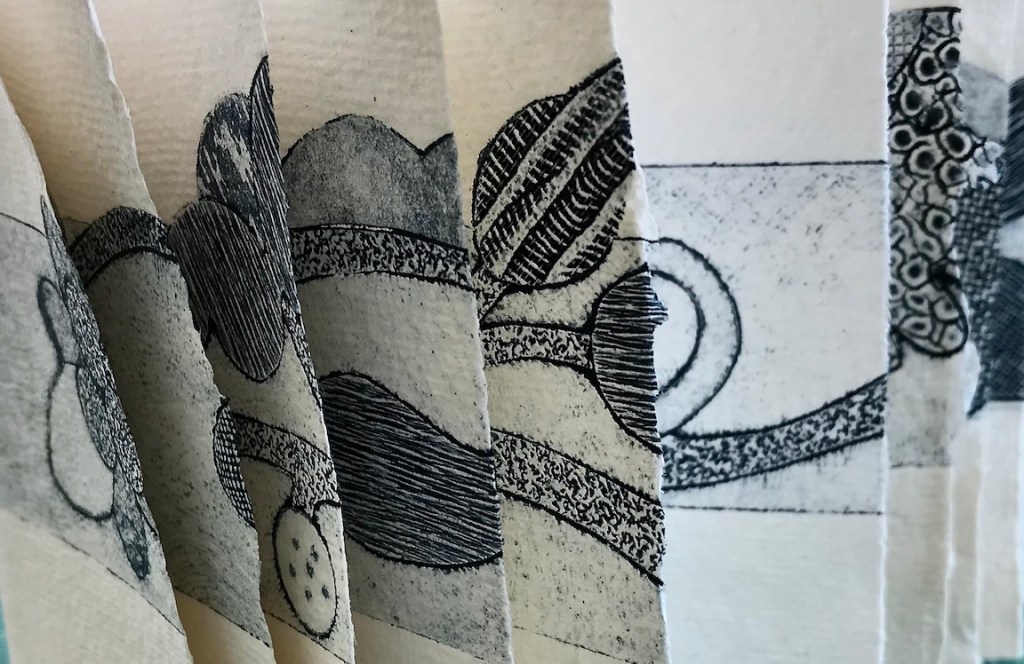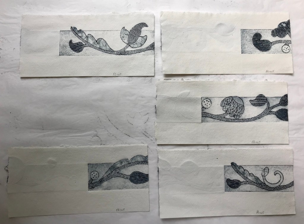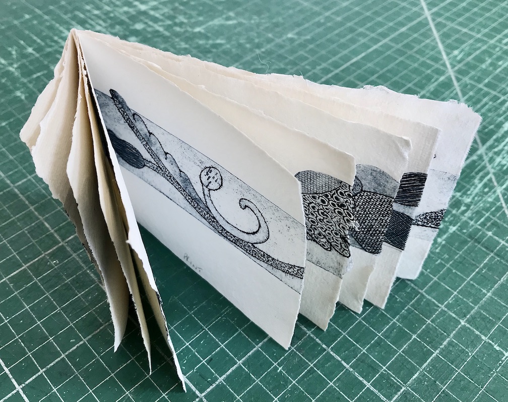 It was a challenge as I had to print on both sides of the paper. I used Indian cotton rag paper which has lovely frilly edges and an indigo ink, so that the effect wasn’t too hard.