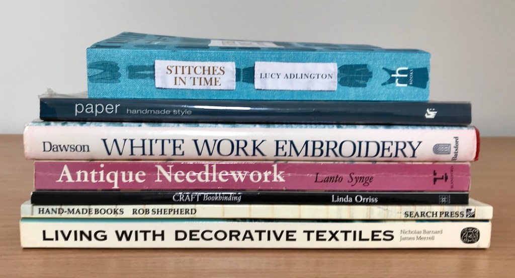 And my reading pile, not too many books, as the weather has been dry so offering many opportunities to dig and weed the garden.