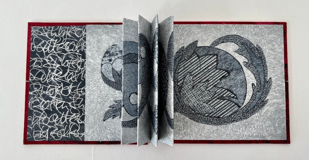 After I had allowed my prints, see my last blog, to dry I folded and/or stitched them into books.