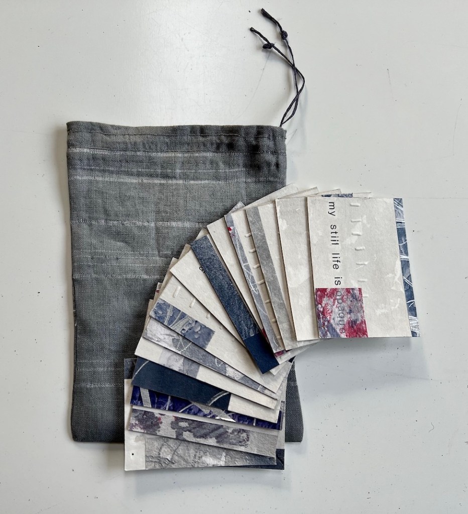Here is the book from Fiona which I am sure she will write about to explain fully the ideas and processes that she went through. I have explored the different arrangements of the cards, reading the text in different ways and popping the cards back into their linen bag.